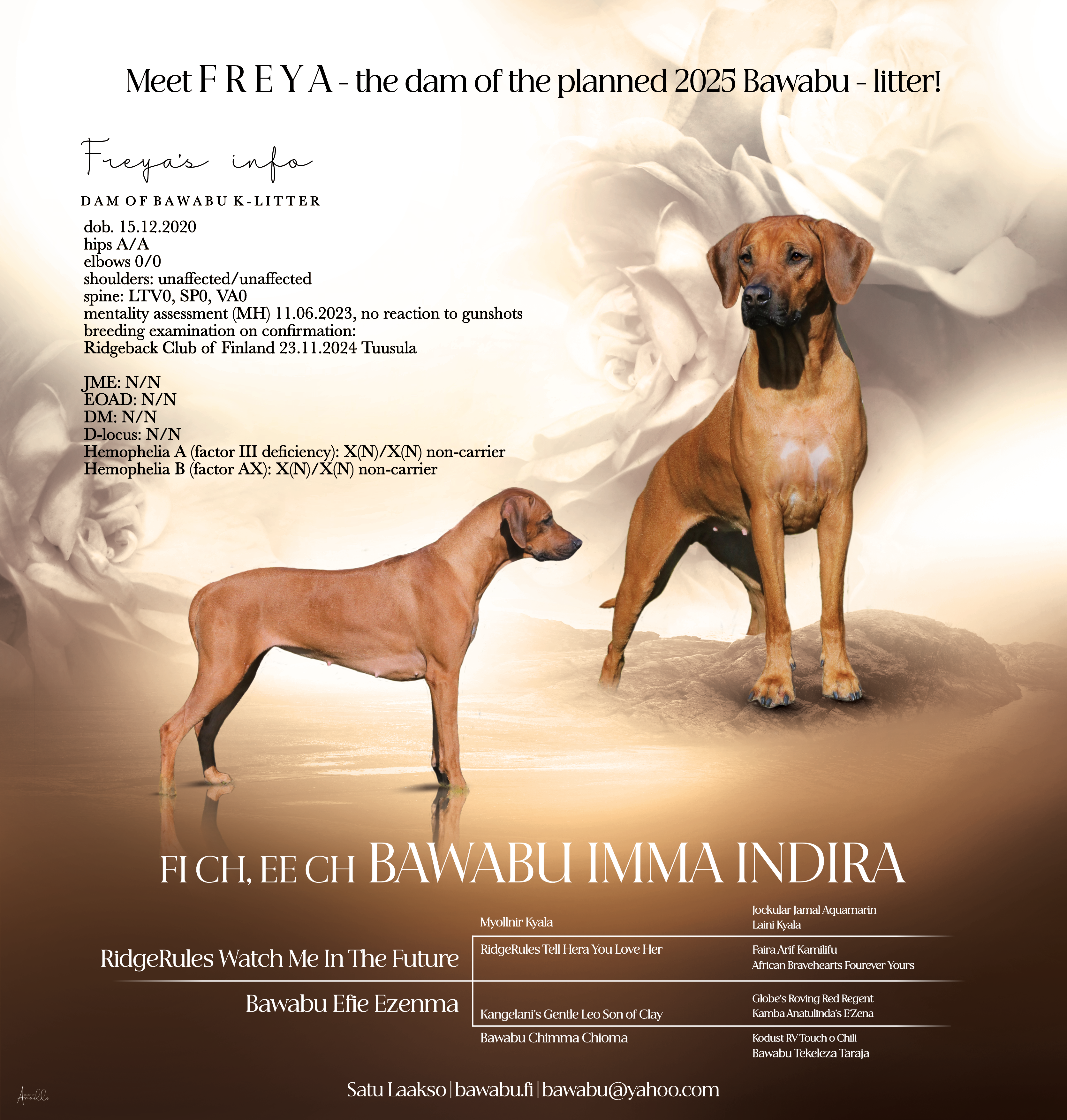 Rhodesian ridgeback breeding for 27 years (1998 - 2024)
